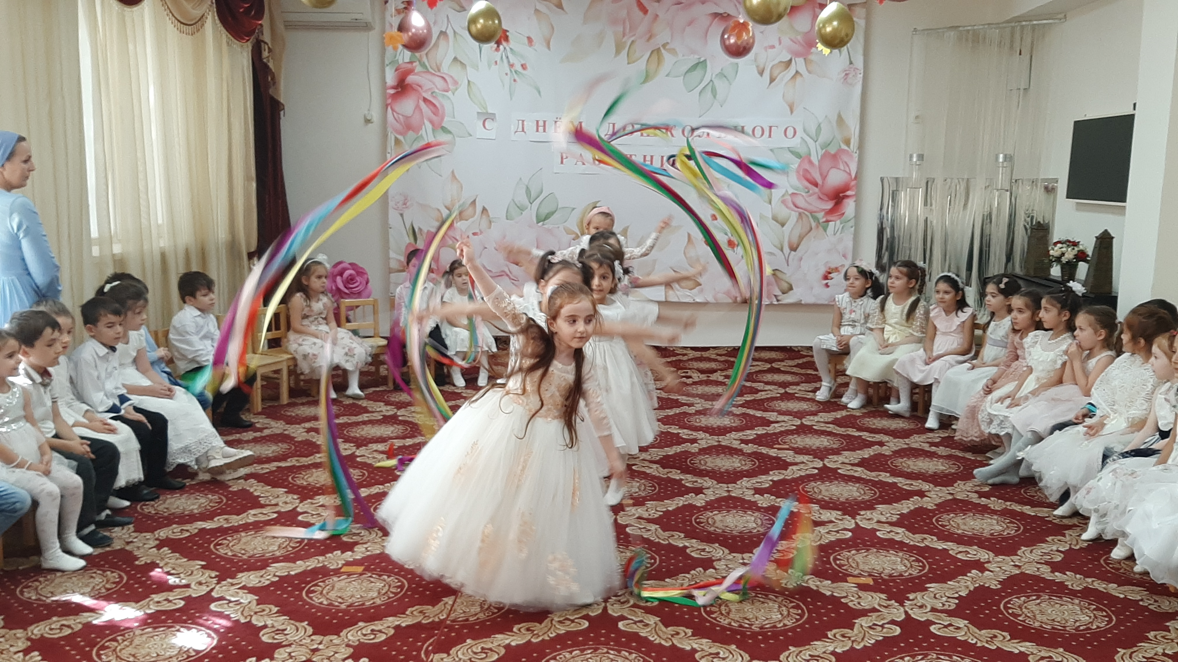 Вот так весело и зажигательно поздравили воспитанники сотрудников детского сада с профессиональным праздником. В этот день звучали песни и стихи, были зажигательные танцы и игры. Грамотами за добросовестный труд и успехи в работе от лица руководителя награждены работники ДОУ.